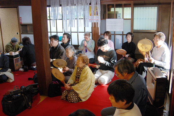 団扇太鼓を打ちながらお題目を唱えます。